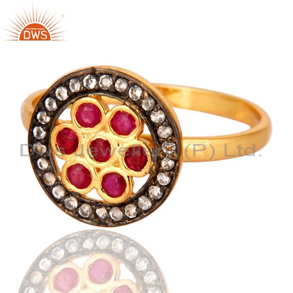 18K Yellow Gold Plated Sterling Silver Genuine Ruby And White Topaz Ring