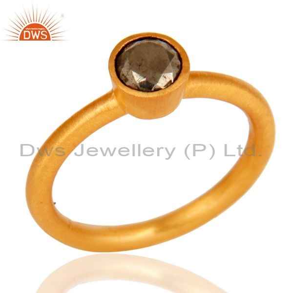18K Yellow Gold Plated Sterling Silver Golden Pyrite Gemstone Stackable Ring