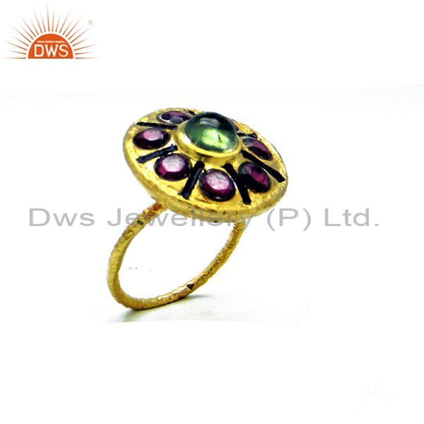 18K Yellow Gold Plated Sterling Silver Green Tourmaline Cocktail Ring