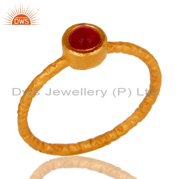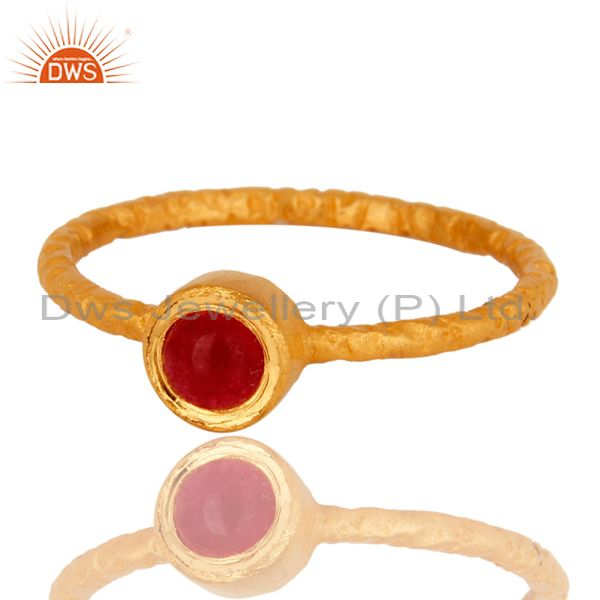18K Yellow Gold Plated Sterling Silver Hand Hammered Pink Chalcedony Ring