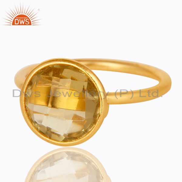 18K Yellow Gold Plated Sterling Silver Lemon Topaz Gemstone Stacking Ring