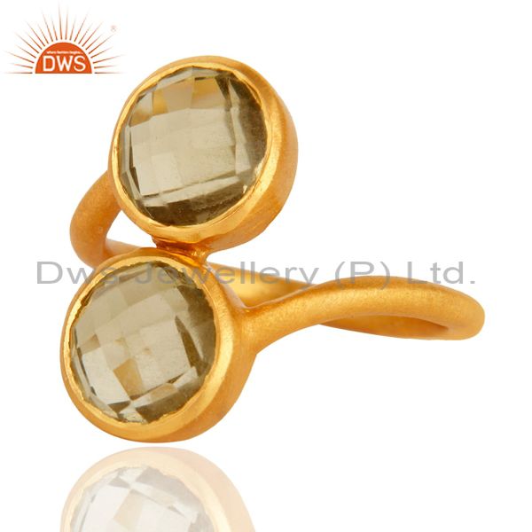 18K Yellow Gold Plated Sterling Silver Lemon Topaz Matte Finish Ring