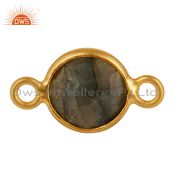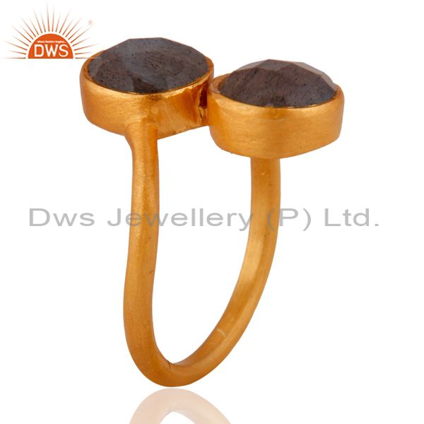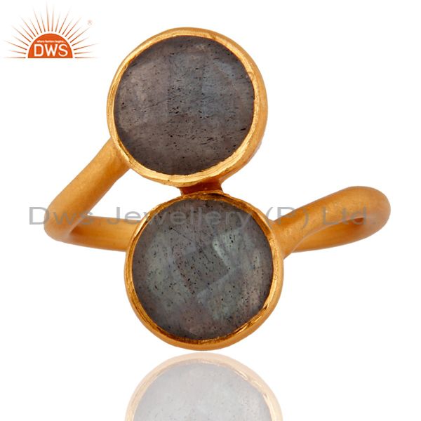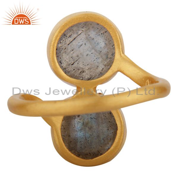 18K Yellow Gold Plated Sterling Silver Natural Labradorite Gemstone Ring