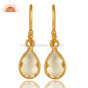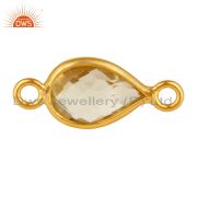 18K Yellow Gold Plated Sterling Silver Natural Lemon Topaz Bezel Gemstone Ring