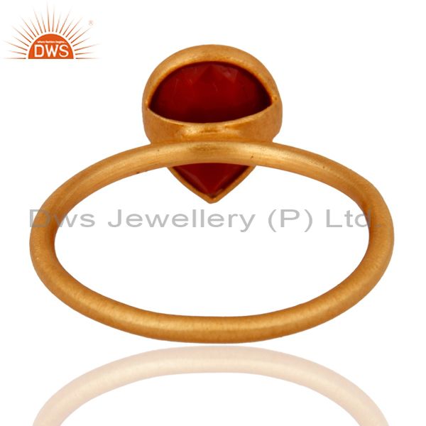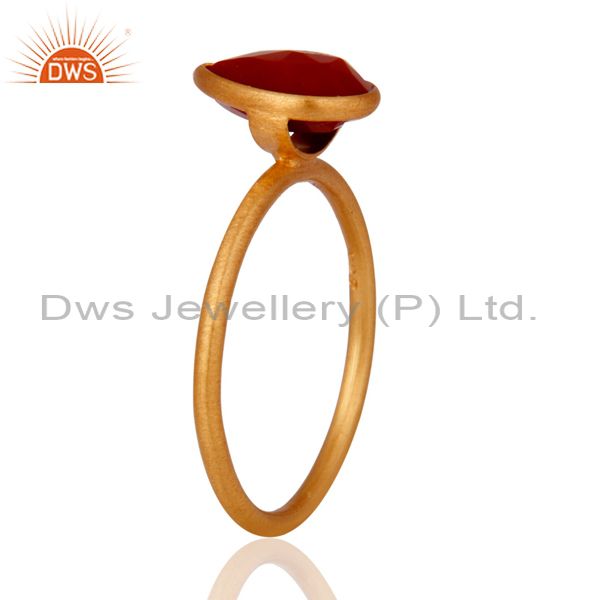 18K Yellow Gold Plated Sterling Silver Red Coral Bezel Set Stacking Ring