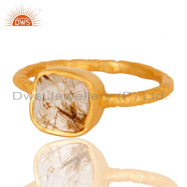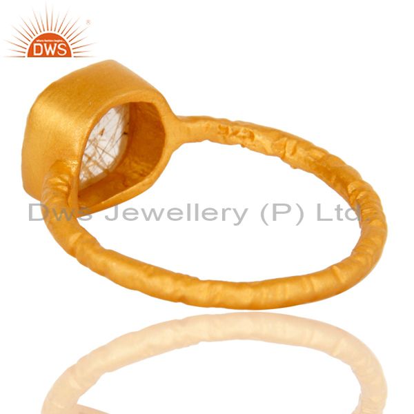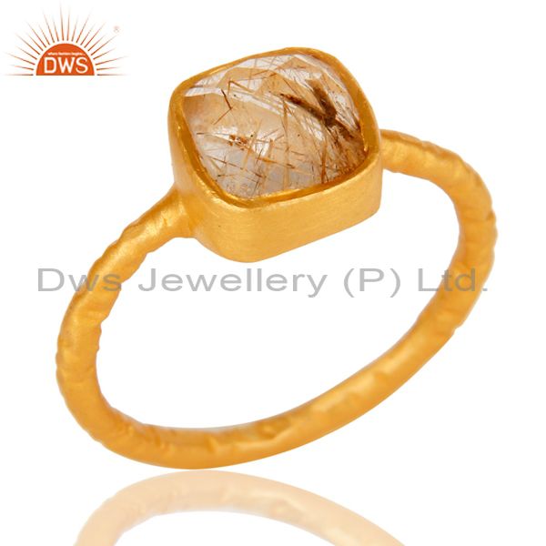 18K Yellow Gold Plated Sterling Silver Rutilated Quartz Gemstone Stackable Ring