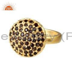 18K Yellow Gold Plated Sterling Silver Smoky Quartz Fashion Cocktail Ring