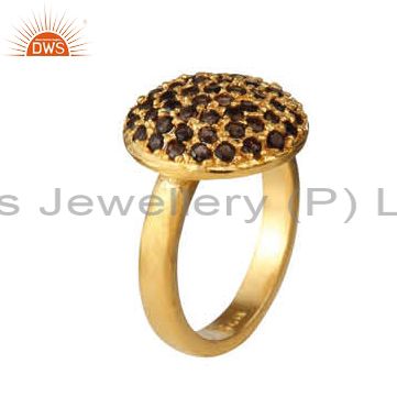 18K Yellow Gold Plated Sterling Silver Smoky Quartz Gemstone Cocktail Ring