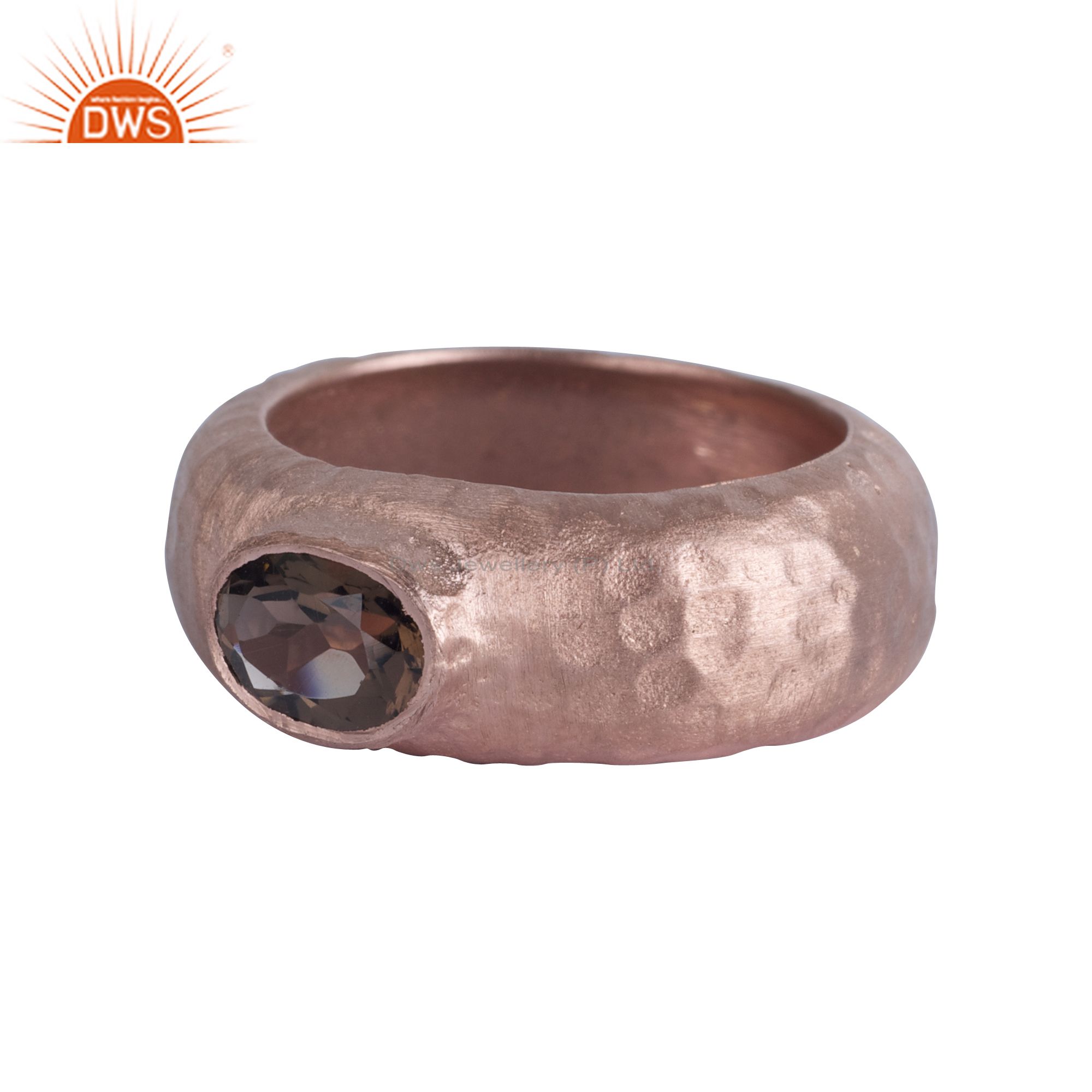 18K Yellow Gold Plated Sterling Silver Smoky Quartz Hammered Dome Ring