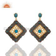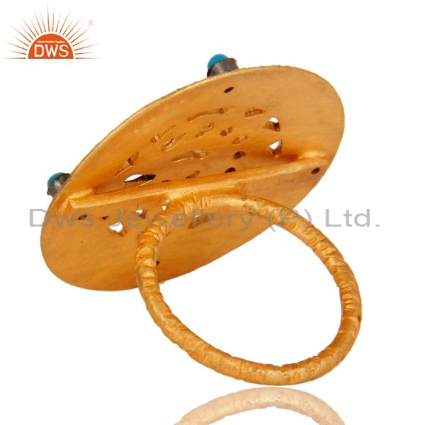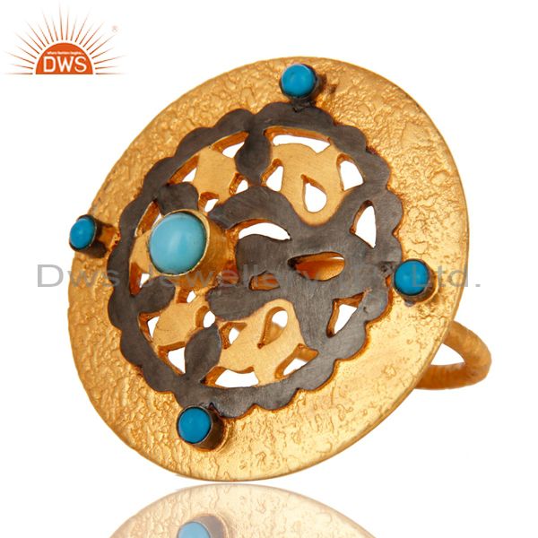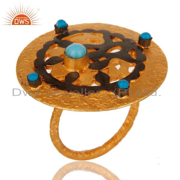 18K Yellow Gold Plated Sterling Silver Turquoise Cocktail Stackable Ring