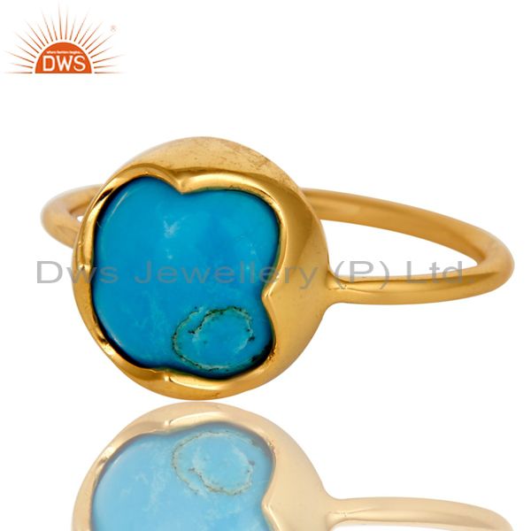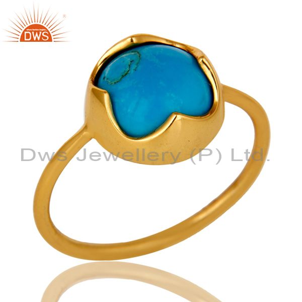 18K Yellow Gold Plated Sterling Silver Turquoise Gemstone Stackable Ring