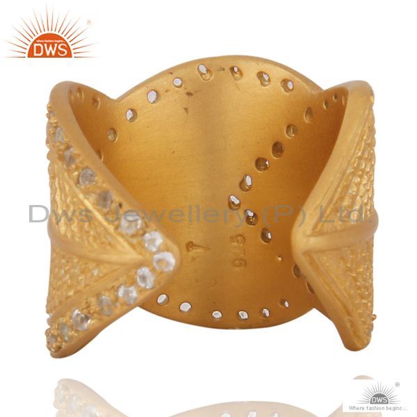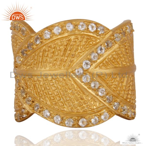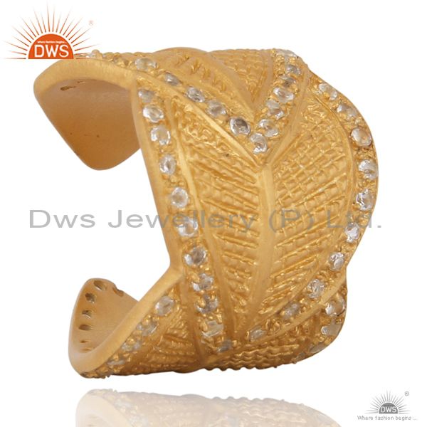 18K Yellow Gold Plated Sterling Silver White Topaz Adjustable Ring