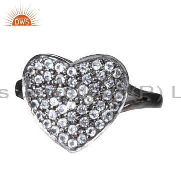 18K Yellow Gold Plated Sterling Silver White Topaz Gemstone Heart Ring