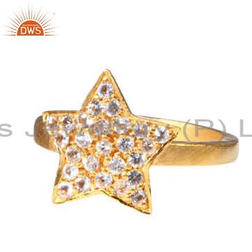 18K Yellow Gold Plated Sterling Silver White Topaz Stackable Star Ring