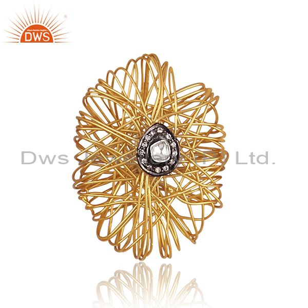 18K Yellow Gold Plated Sterling Silver Wire Wrapped Next Design Cocktail Ring