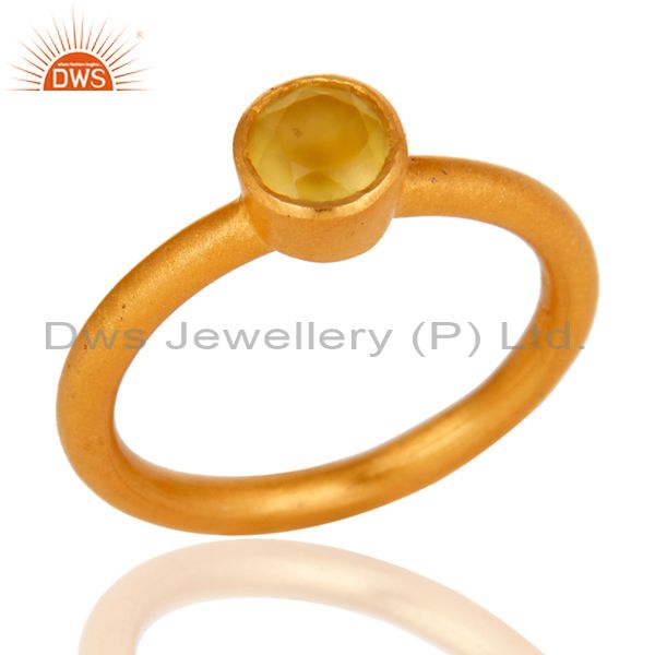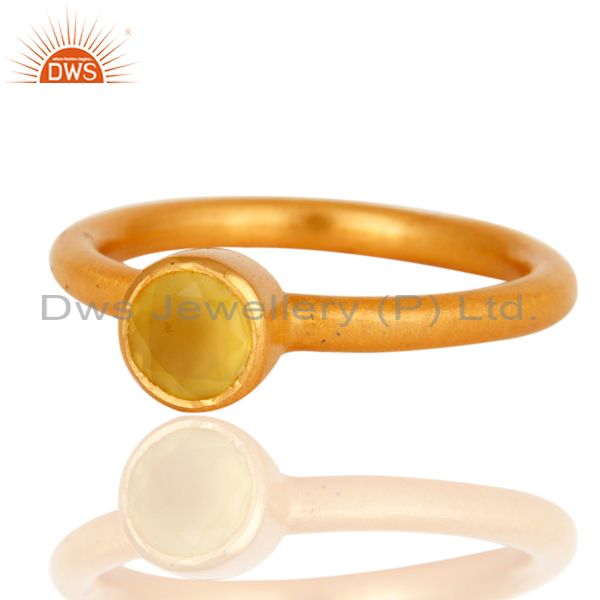 18K Yellow Gold Plated Sterling Silver Yellow Chalcedony Gemstone Stacking Ring