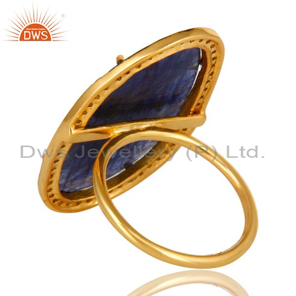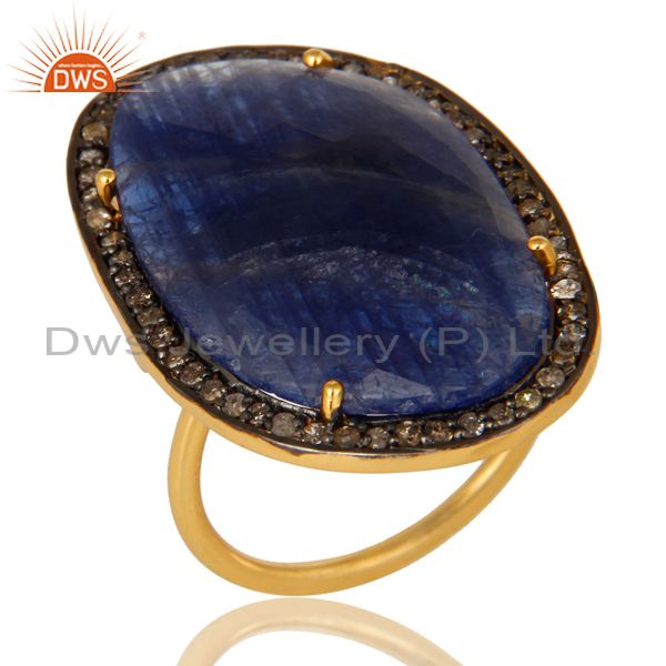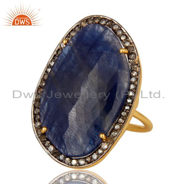 18K Yellow Gold Sterling Silver Pave Diamond And Blue Sapphire Cocktail Ring