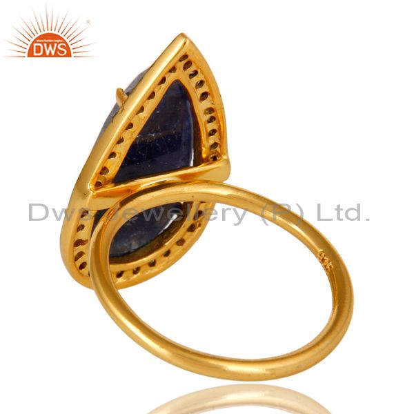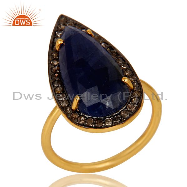 18K Yellow Gold Sterling Silver Pave Diamond And Blue Sapphire Statement Ring