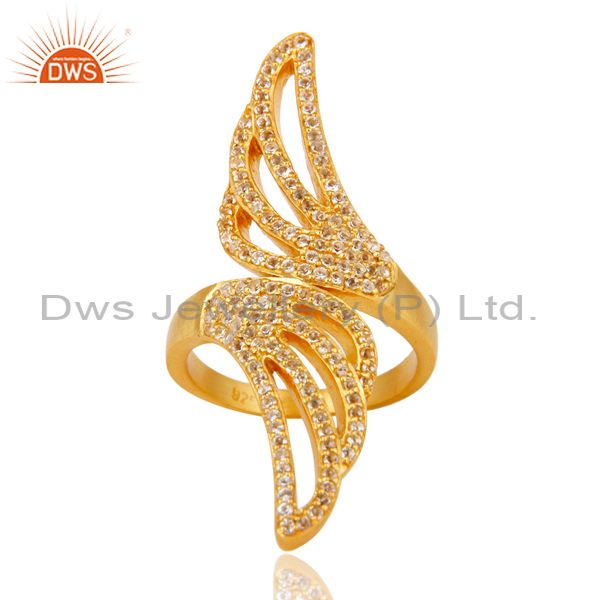 22K Gold Plated 925 Sterling Silver Handmade White Topaz Knuckle Design Ring
