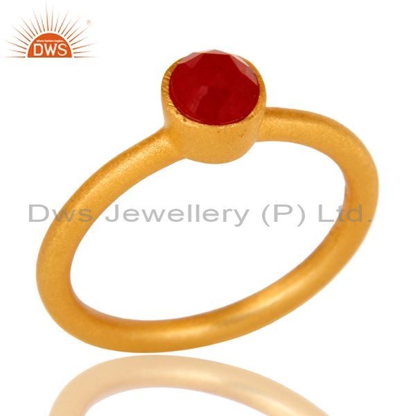 22K Gold Plated 925 Sterling Silver Natural Aventurine Little Stackable Ring