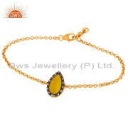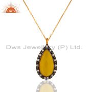 22K Gold Plated 925 Sterling Silver Yellow Moonstone Pear Shape Gemstone Ring