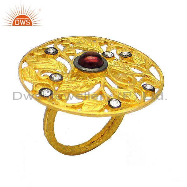 22K Gold Plated Sterling Silver Cubic Zirconia And Tourmaline Cocktail Ring