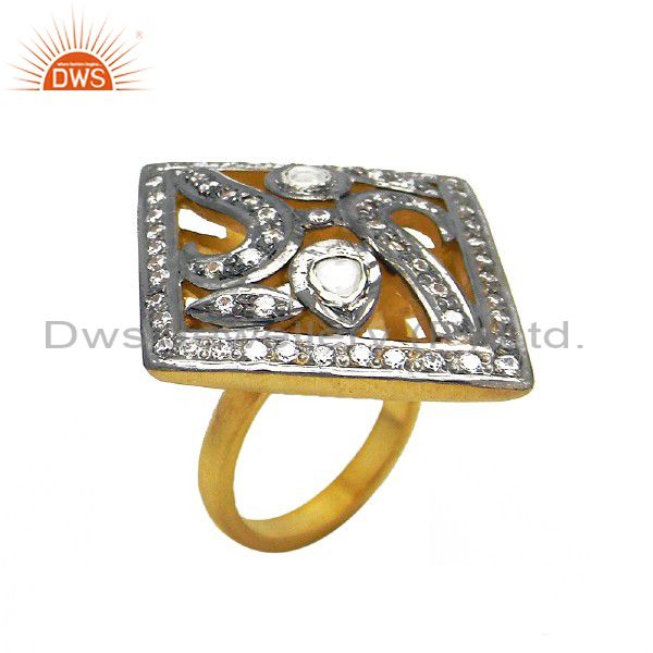 22K Gold Plated Sterling Silver Cz Crystal Polki Victorian Look Cocktail Ring