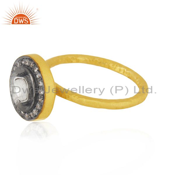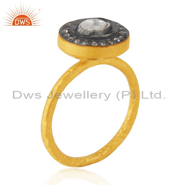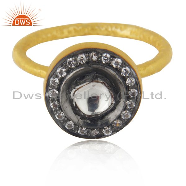 22K Gold Plated Sterling Silver Cz Crystal Polki Victorian Look Stackable Ring