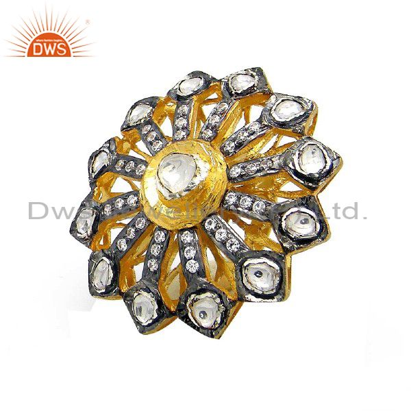 22K Gold Plated Sterling Silver Cz Crystal Polki Victorian Style Cocktail Ring
