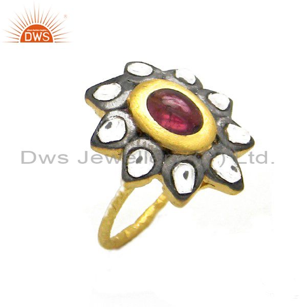 22K Gold Plated Sterling Silver Tourmaline And Cz Polki Victorian Stackable Ring