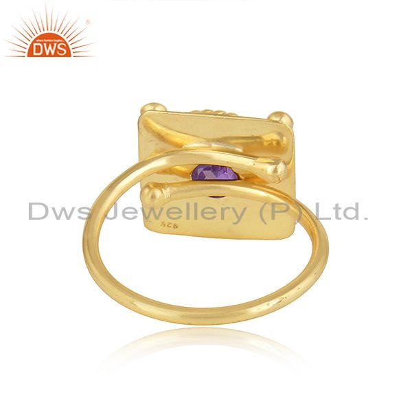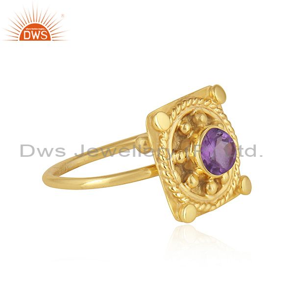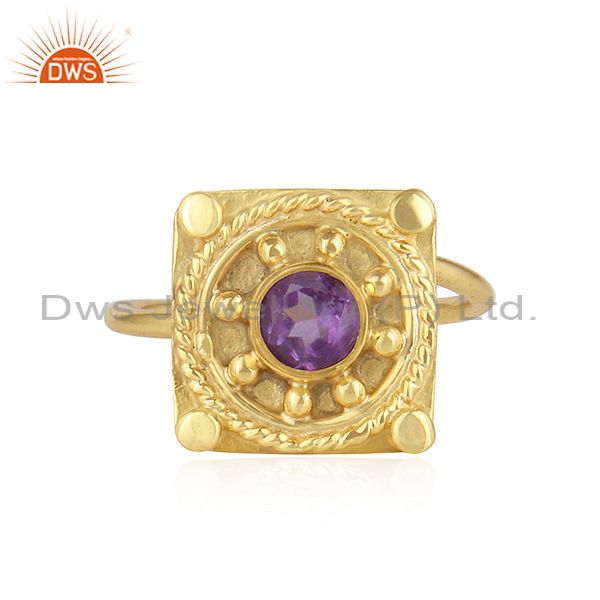22K Gold Plated Vintage Design Silver Natural Amethyst Ring Jewelry