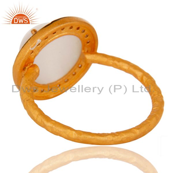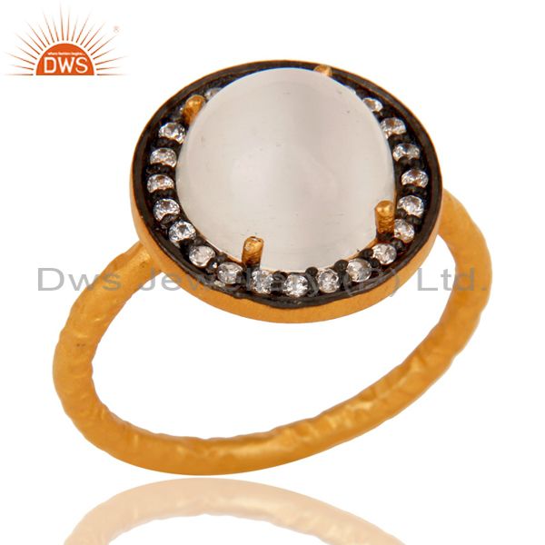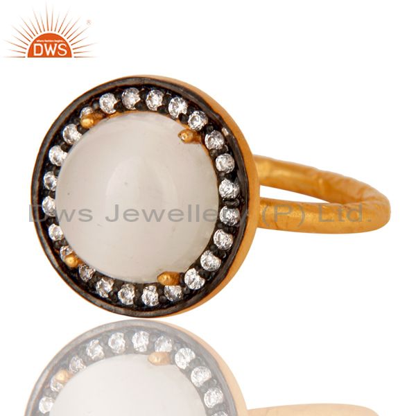 22K Yellow Gold Plated 925 Sterling Silver White Moonstone And White Zircon Ring