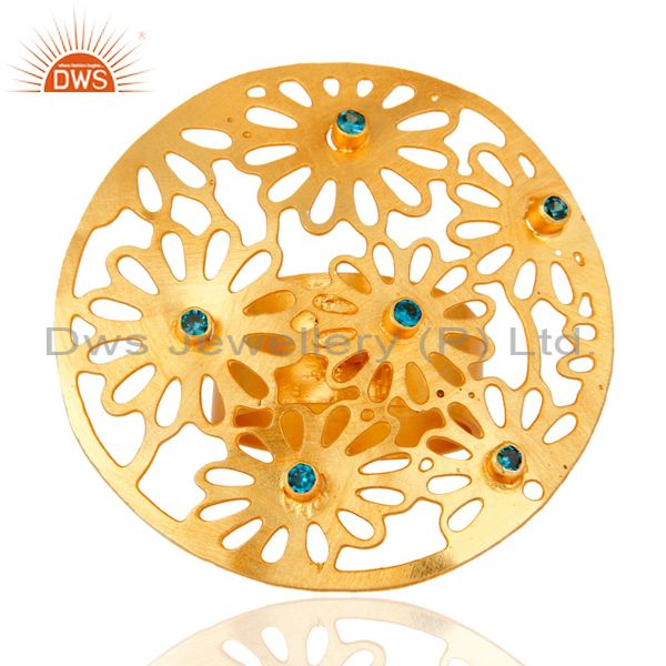 22K Yellow Gold Plated Blue Cubic Zirconia Filigree Patterns Cocktail Ring