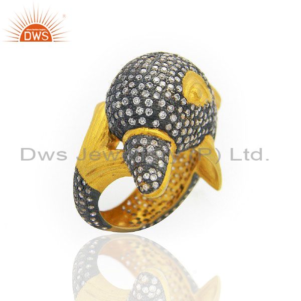 22K Yellow Gold Plated Brass Cubic Zirconia Birds Design Cocktail Ring
