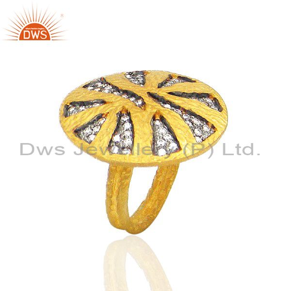 22K Yellow Gold Plated Brass Cubic Zirconia Designer Hammered Cocktail Ring