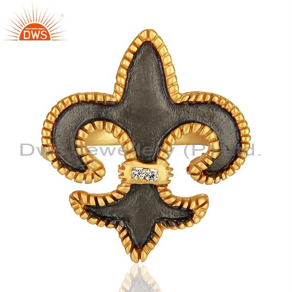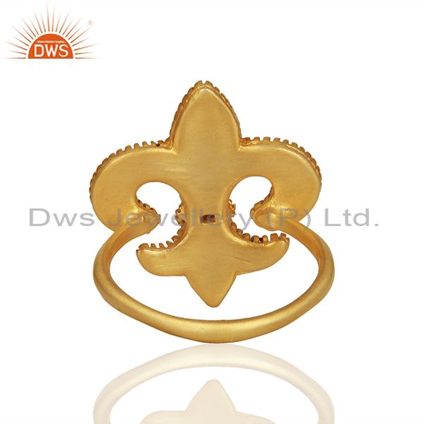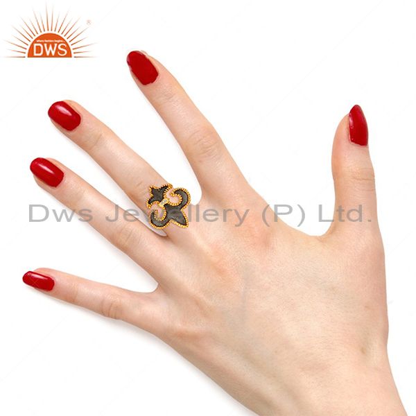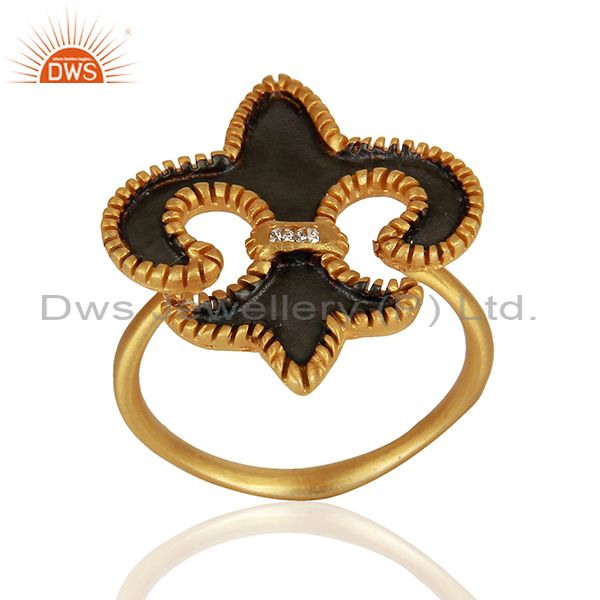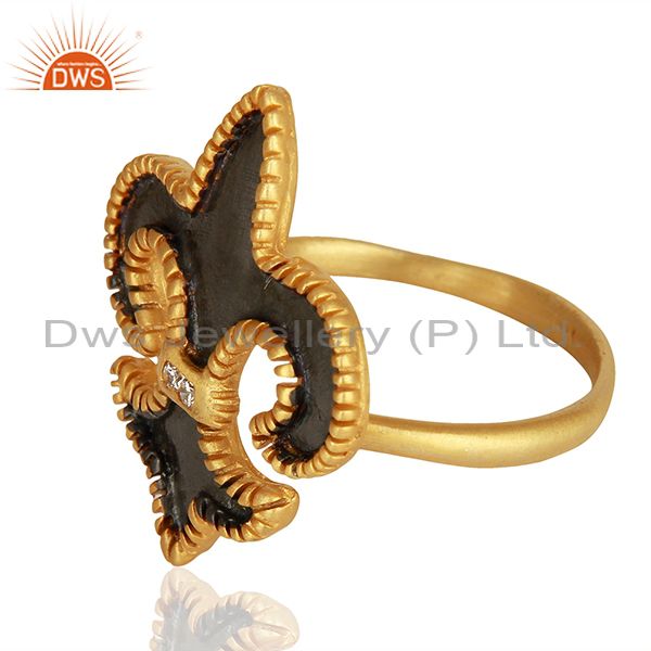 22K Yellow Gold Plated Brass Fleur De Isr Hammered Cocktail Ring With Enamel