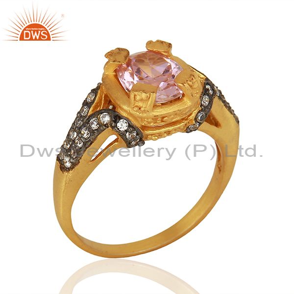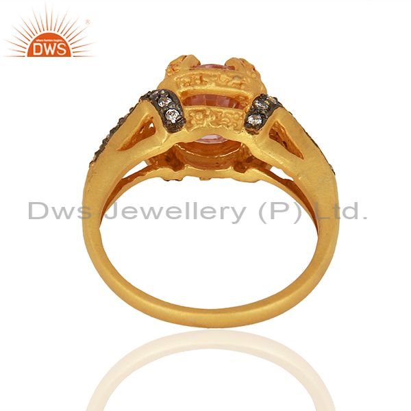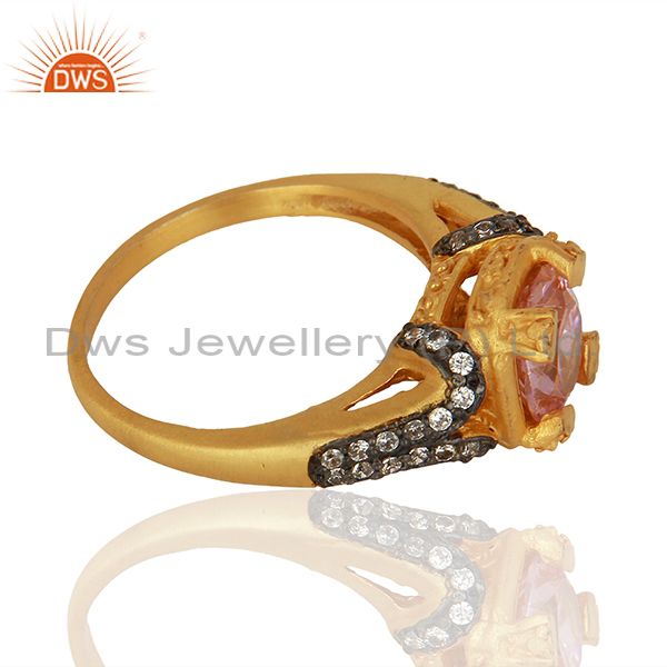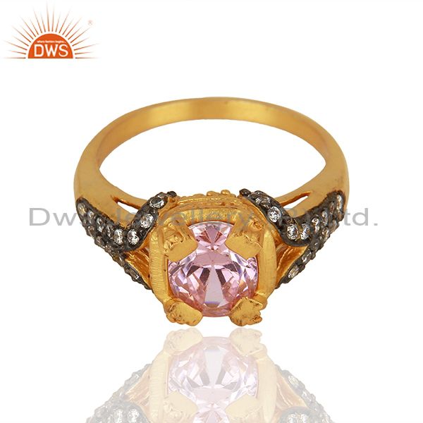 22K Yellow Gold Plated Brass Pink Cubic Zirconia Womens Fashion Ring