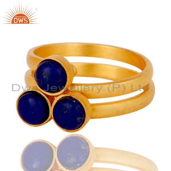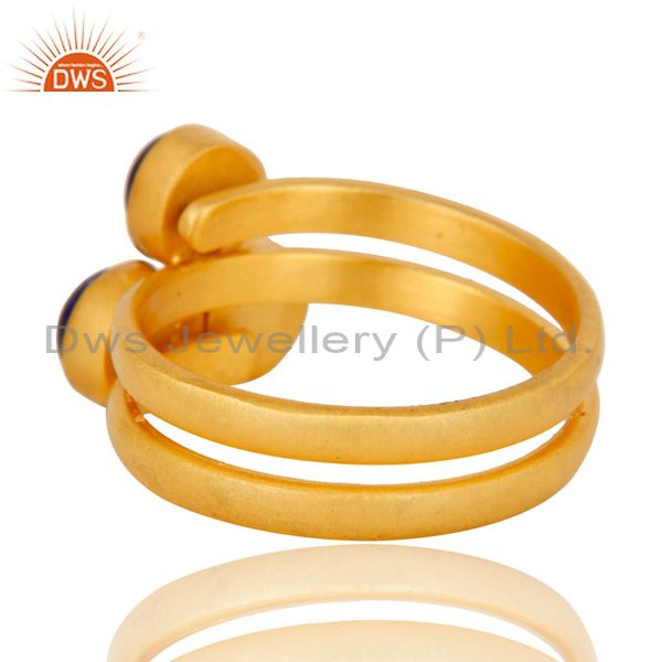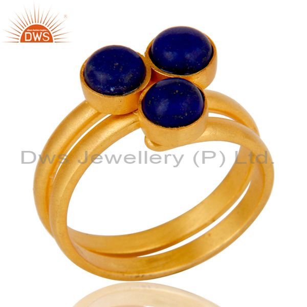 22K Yellow Gold Plated Handmade Lapis Lazuli Brass Statement Ring Jewellery