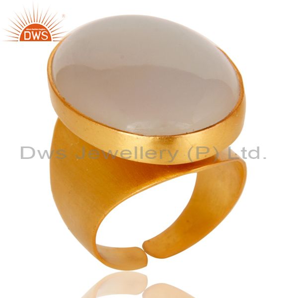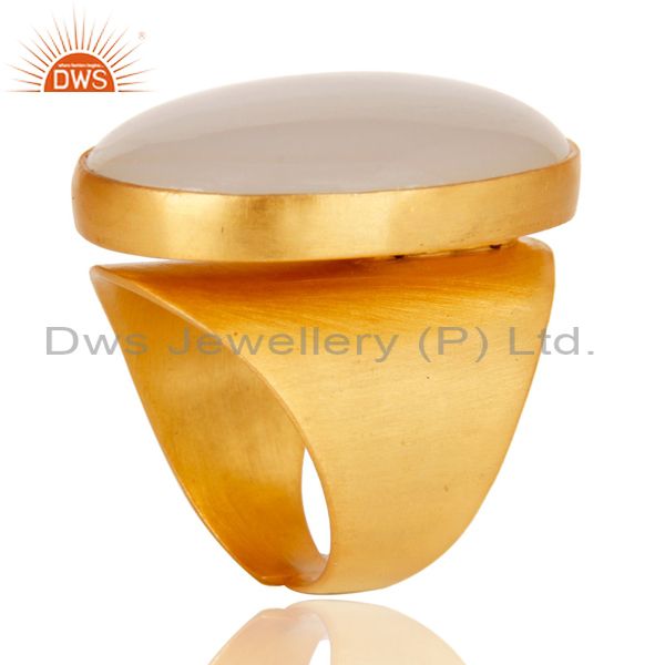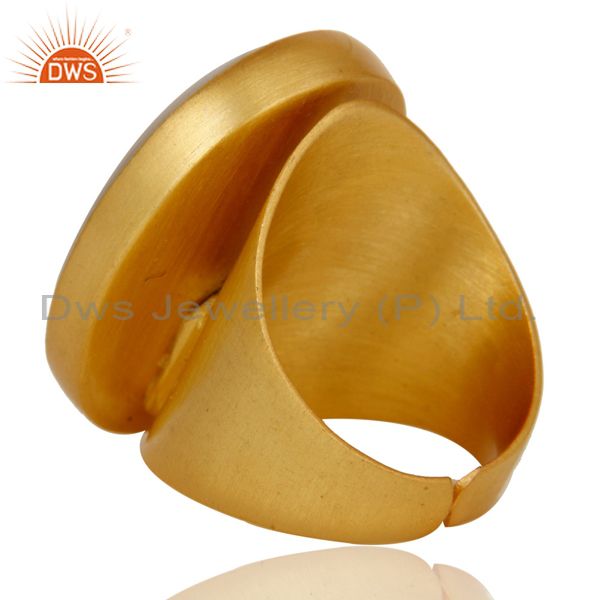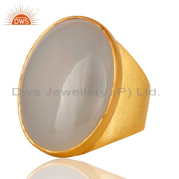 22K Yellow Gold Plated Handmade Wide Natural Chalcedony Brass Dome Ring