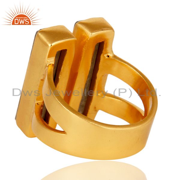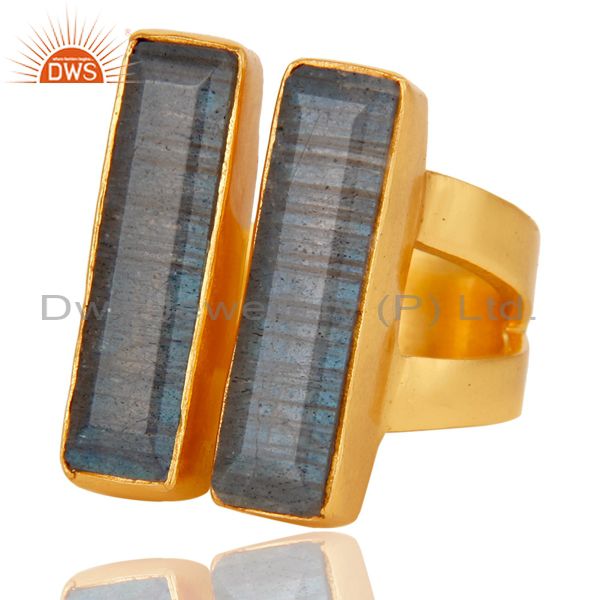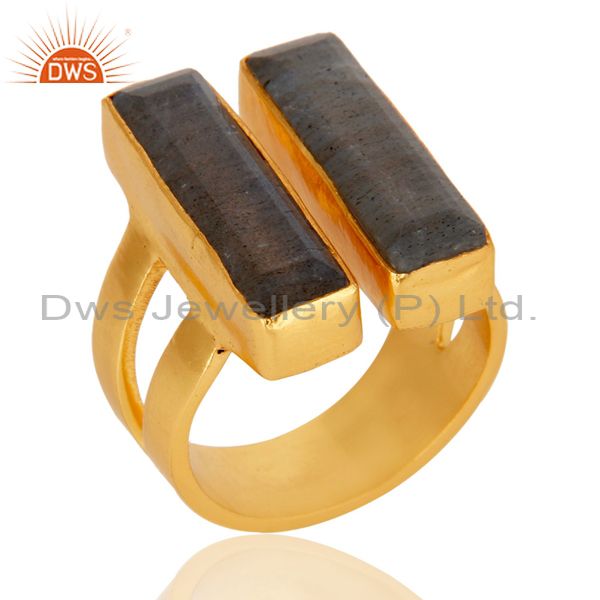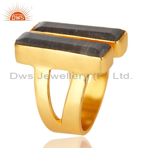 22K Yellow Gold Plated Labradorite Brass Statement Ring Fashion Jewelry