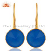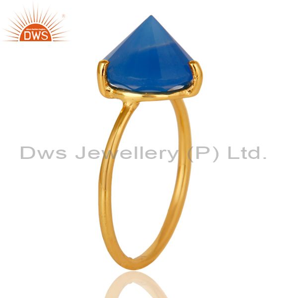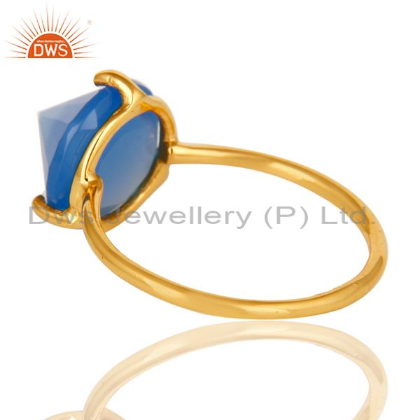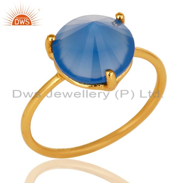 22K Yellow Gold Plated Sterling Silver Blue Chalcedony Gemstone Stackable Ring