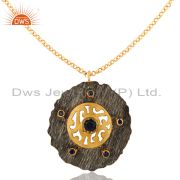 22K Yellow Gold Plated Sterling Silver Blue Sapphire Hammered Statement Ring