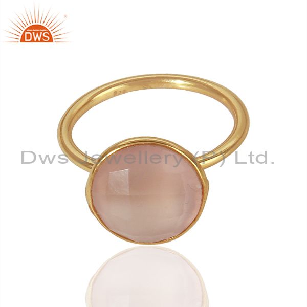22K Yellow Gold Plated Sterling Silver Chalcedony Gemstone Stacking Ring