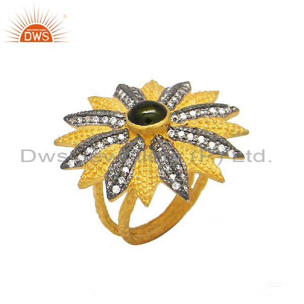 22K Yellow Gold Plated Sterling Silver Cz And Pink Tourmaline Cocktail Ring