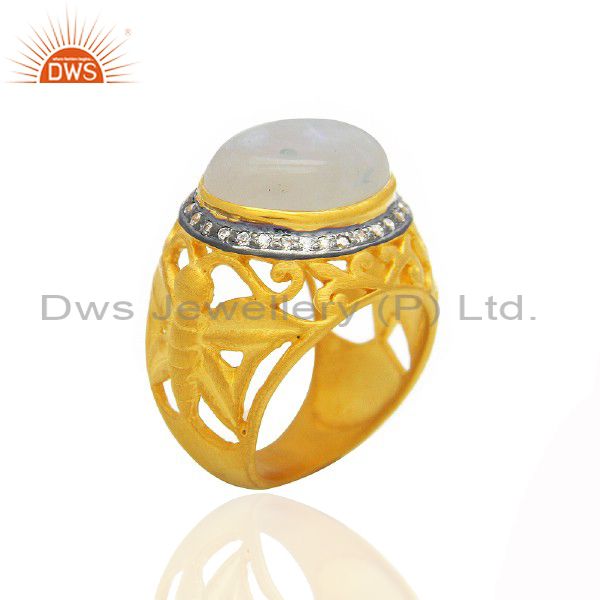 22K Yellow Gold Plated Sterling Silver Rainbow Moonstone Designer Dome Ring