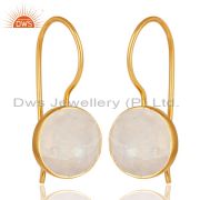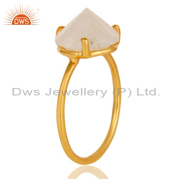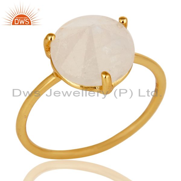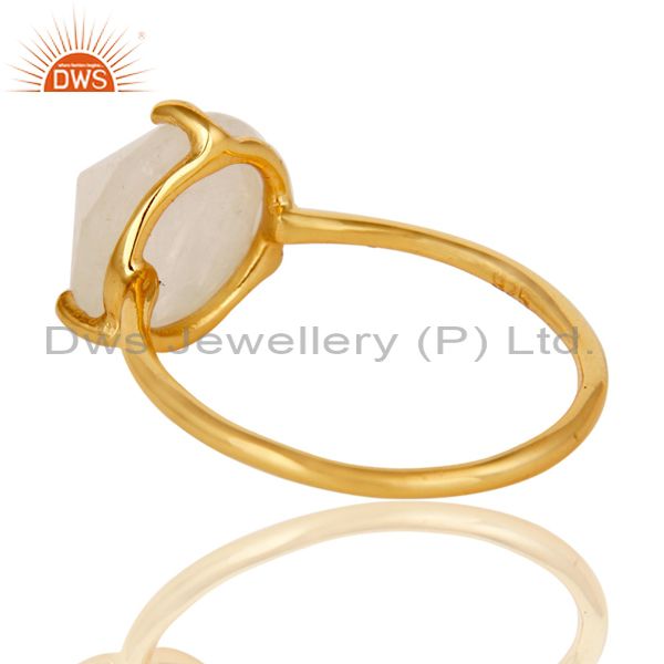 22K Yellow Gold Plated Sterling Silver Rainbow Moonstone Stackable Ring