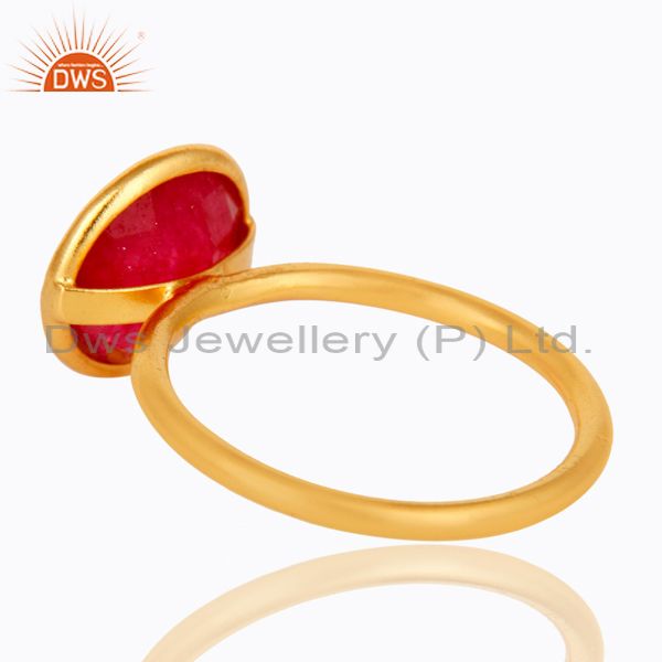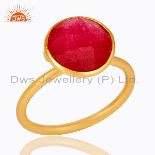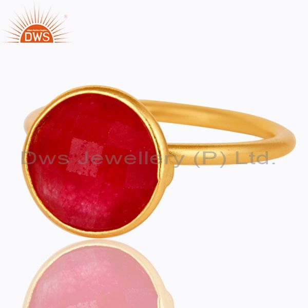 22K Yellow Gold Plated Sterling Silver Red Aventurine Gemstone Stacking Ring