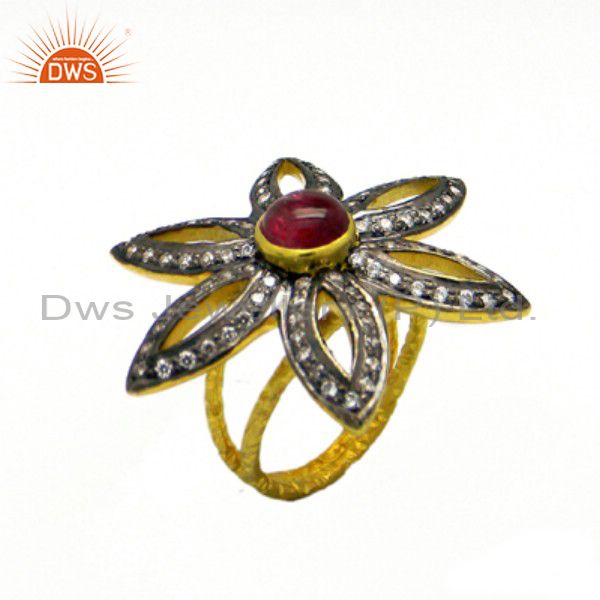 22K Yellow Gold Plated Sterling Silver Tourmaline And Cz Flower Cocktail Ring