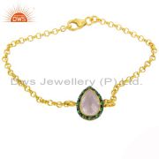 22K Yellow Gold Plated Sterling Silver Tsavorite And Ruby Stone Statement Ring