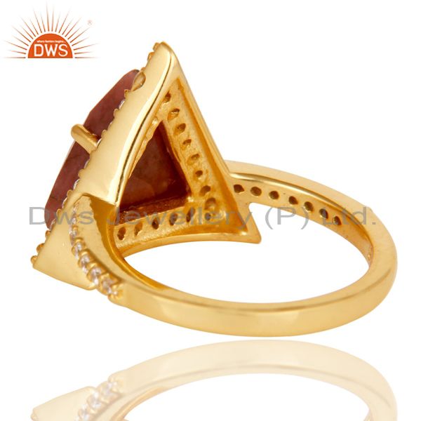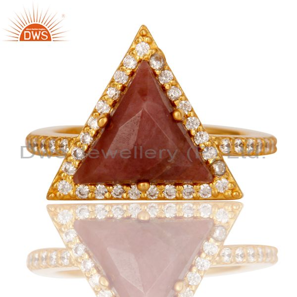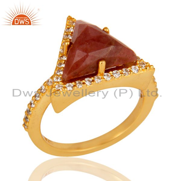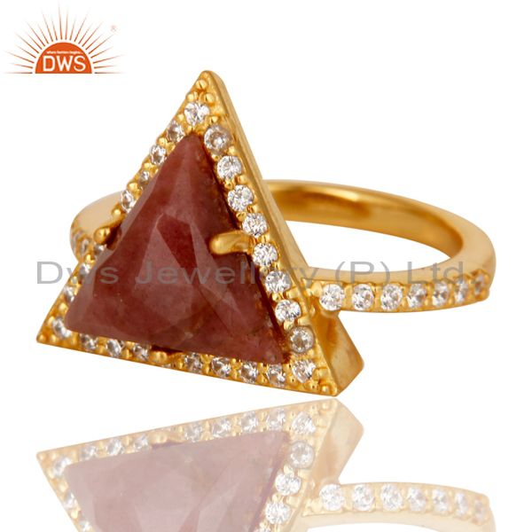 24K Gold Plated 925 Sterling Silver Rhodonite & White Zirconia Statement Ring